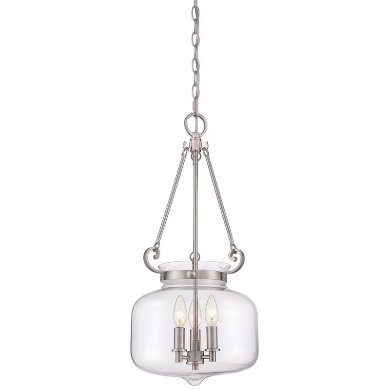 Lampada appesa Stewart 3xE14 H: 64.8 Ø: 30.5 Dimensioni in mm: Altezza: 648, Diametro: 305 Illuminante incluso: No Tipo LED / Versione: E14 Potenza massima in watt: 60 dimmerabile: no Classe di protezione: IP20 Colore: Nichel spazzolato