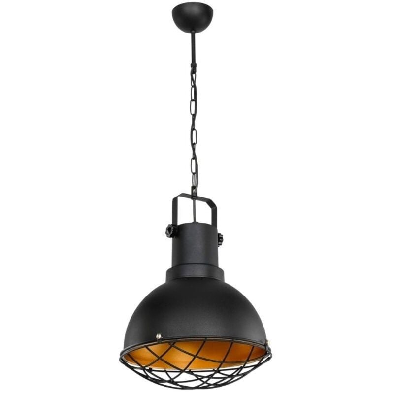 Lampada a sospensione stile industriale nero Tonya ASZ1187 La lampada a sospensione Tonya ricorda le illuminazioni delle fabbriche degli anni 70. Design originale abbinabile ad ogni ambiente di casa tua. Il materiale è in metallo nero e la griglia protegge dall'abbagliamento e dona un fascio di luce davvero unico. L'interno il paralume offre una colorazione dorata. Caratteristiche: Materiale metallo. Colore nero. Altezza 90 cm. Larghezza 31 cm. Altezza paralume 45 cm. Attacco lampadina E27 60 Watt Perchè scegliere la lampada a sospensione Tonya? Se ami lo stile vintage e industriale, è la scelta giusta per te. Design unico e originale. Ideale per illuminare la zona giorno, da sola o in composizioni multiple. Facile da installare e da pulire. Altezza: 90 Larghezza: 45 Colore: nero Tipo Lampadina: E27 Contiene Legno: Si