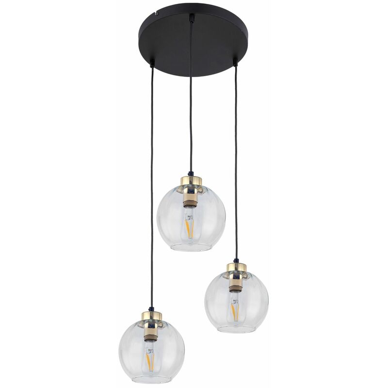 Dettagli del prodotto Materiale: Metallo, vetro Dimensioni: larghezza: 350 mm, profondità di sospensione: 950 mm, lunghezza: 370 mm Attacco: 3x E27 fino a. 15 W (nur für LED geeignet) Classe di protezione dagli spruzzi: IP20 Colore: Nero, Trasparente, Oro Peso: 1900 grammo Altre immagini