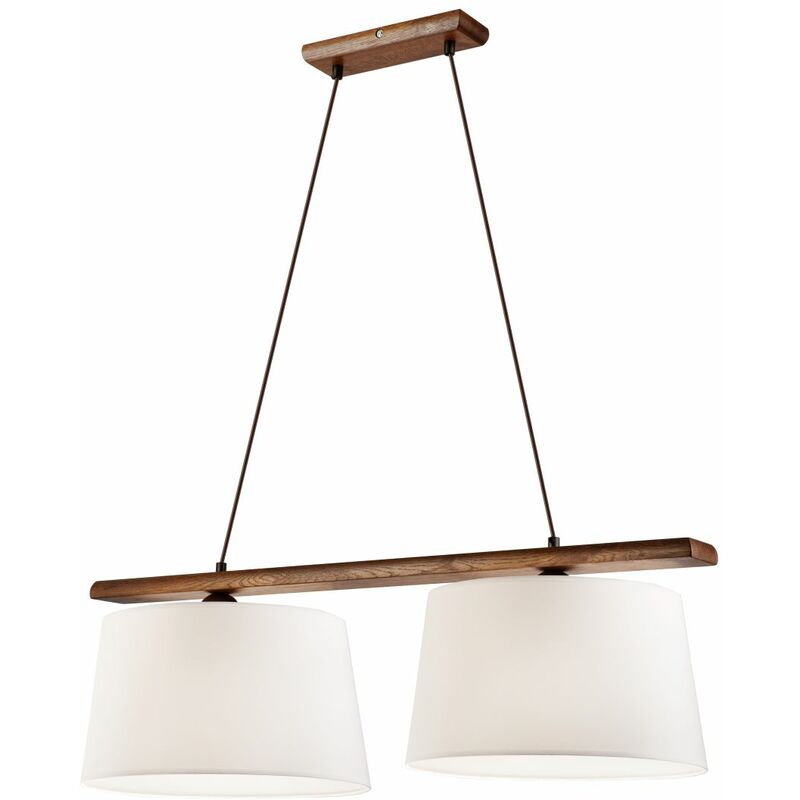 Dettagli del prodotto Materiale: Legno (rovere), tessuto Dimensioni: larghezza: 900 mm, profondità di sospensione: 950 mm Attacco: 2x E27 fino a 60W Classe di protezione dagli spruzzi: IP20 Colore: Noce, ecru Descrizione del prodotto La lampada è realizzata in legno di quercia e tessuto. Comoda lampada a sospensione per sala da pranzo e soggiorno, la luce viene diffusa attraverso il paralume in tessuto chiaro e garantisce una piacevole illuminazione, il mix di materiali in tessuto e legno garantisce un ambiente accogliente e si adatta a molti colori e stili di arredamento, il colore scuro del legno lascia trasparire la venatura, che conferisce alla lampada un aspetto massiccio e naturale.