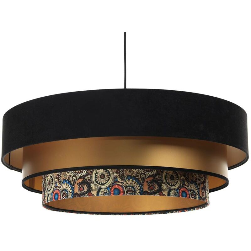Lampada sospesa triniti nero/oro/colorato 1xe27 H: 102 cm Ø 60 cm Dimmabile Dimensioni in mm: Altezza: 1020, diametro: 600 Peso in kg: 1.5 Lampade contengono: No Tipo di lampada/versione: E27 Prestazioni massime in Watt: 60 Dimmbar: Sì Classe di protezione: ip20 materiale per la casa: metal Colore: Schwarz Materiale vetro/picchi: tessile da velour (microfibra) su colore interno a base di ombrello a base di PVC Glass/ombrello Colore: nero/oro/colorato Informazioni aggiuntive: Cavo di alimentazione nero con lunghezza di 80 cm