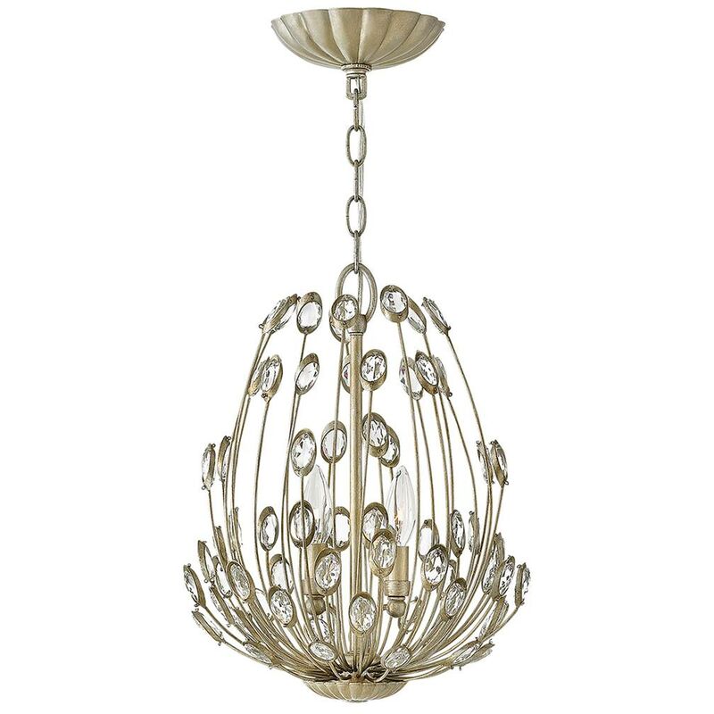 TULAH LIGHT a sospensione 3xe14 H: 40.1 Ø: 30.5 Dimensioni in mm: Altezza: 401, diametro: 305 peso in kg: 3150 mezzo luminato incluso: no Tipo di lampada/versione: E14 Prestazioni massime in watt: 6. colore: foglia d'argento