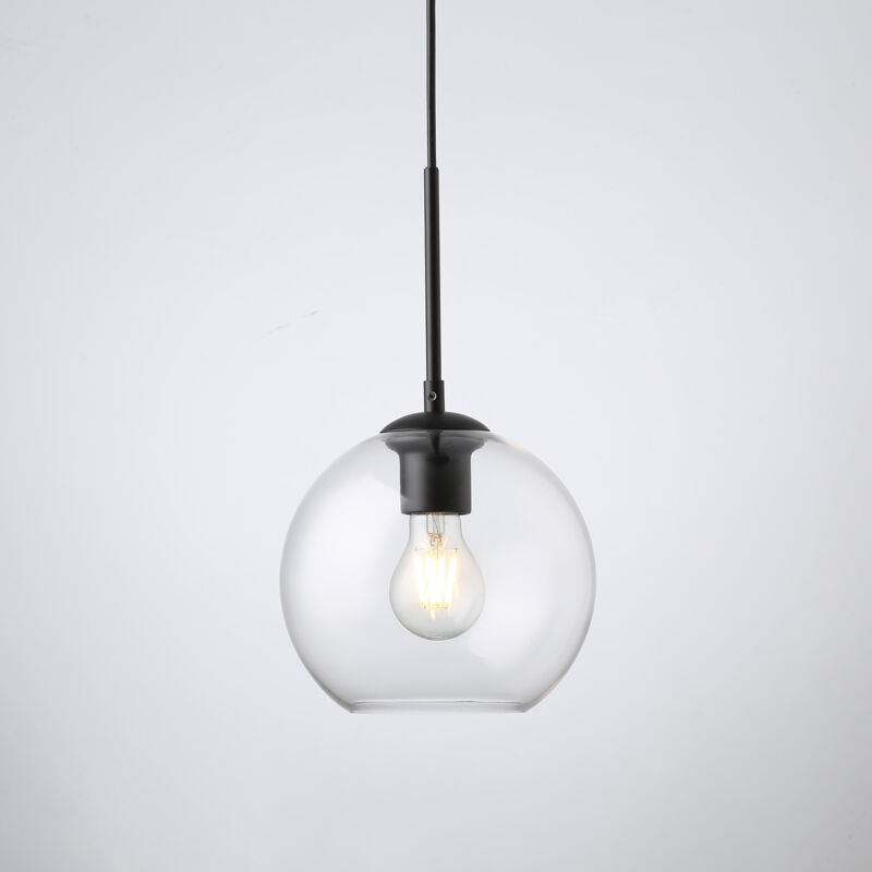 La lampada a sospensione Cleire è un elemento di illuminazione contemporanea che unisce eleganza e semplicità. È composta da una sfera in vetro trasparente, da un portalampada, da un rosone in metallo con finitura oro o nera e da un cavo nero che ne completa l'aspetto elegante e sofisticato. **Lampadina E27 - non inclusa**.