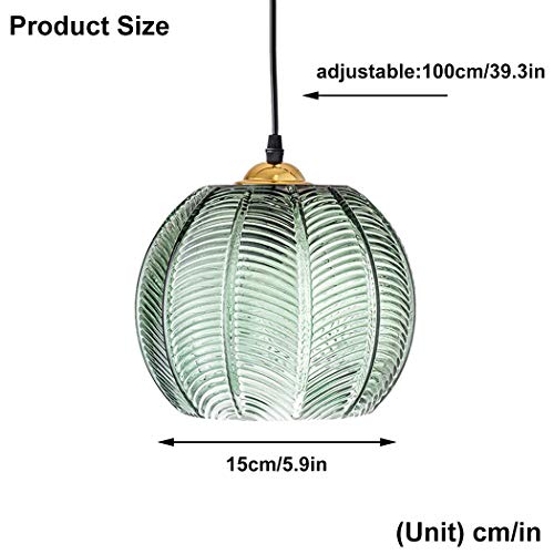 Lampada a sospensione in vetro Paralume verde Illuminazione moderna a soffitto Lampada nordica Art Déco soggiorno sala da pranzo camera da letto cucina soggiorno lampada a sospensione interna,E27,15cm