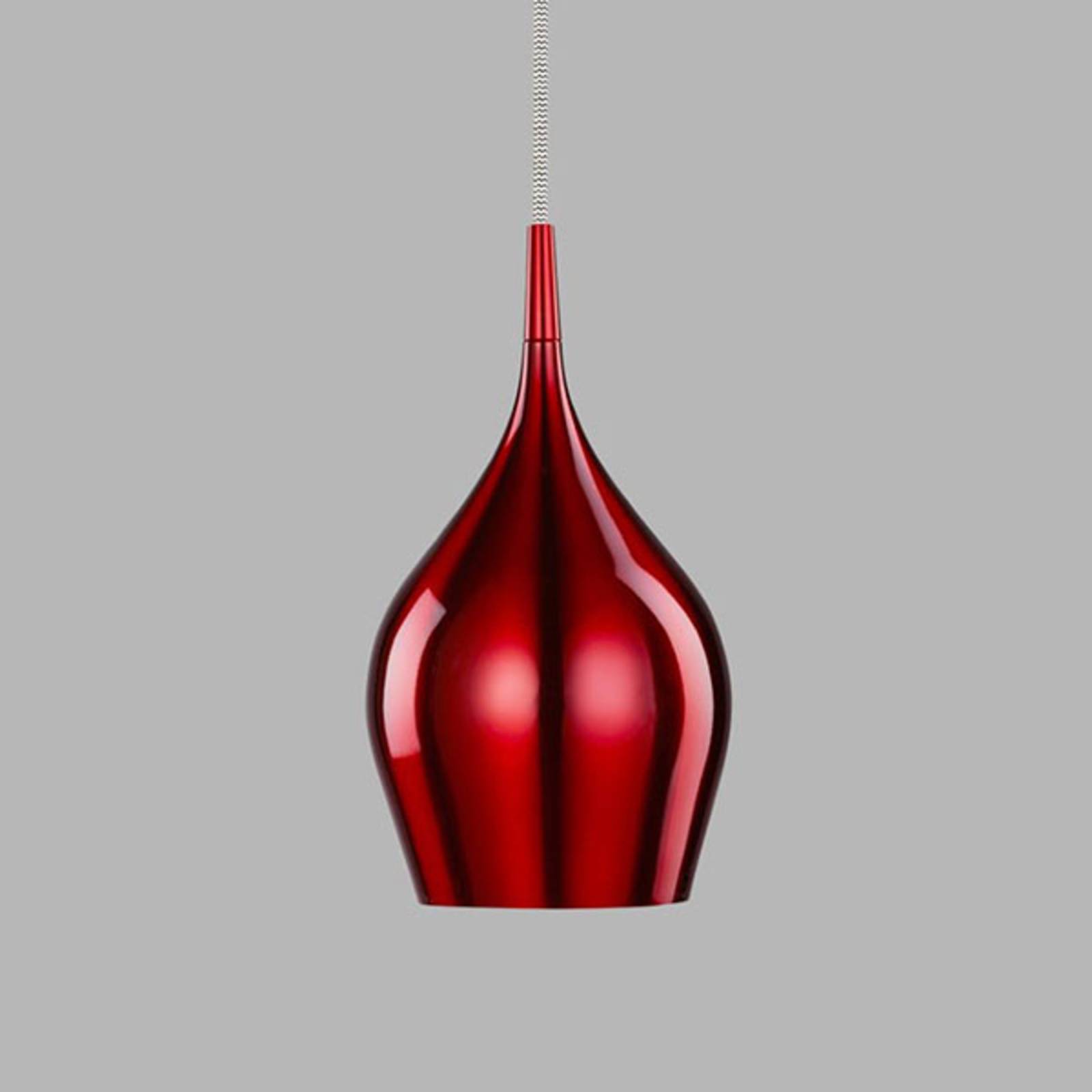 Lampada a sospensione Vibrante a forma di campana Il piccolo apparecchio a sospensione Vibrant convince per la sua forma a campana o a goccia e il suo colore brillante. Il paralume in alluminio è colorato all'esterno e ha una bella lucentezza. L'interno è dipinto di bianco, in modo che la luce della lampada E14 rifletta in modo eccellente e quindi intensifichi la luce. Vibrant è un piccolo apparecchio a sospensione ideale per l'illuminazione mirata di tavoli o banchi. L'elegante lampada a sospensione fornisce anche luce aggiuntiva, ad esempio sopra una cassettiera o un piccolo tavolino, per creare una piacevole atmosfera.