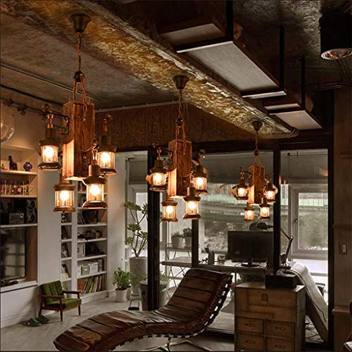 Lampada a sospensione vintage industriale lampadario rustica in legno Metallo e vetro Creative E27 Portalampada lampadario regolabile in altezza 4 fiamme nero Lampada da soffitto per bar da cucina