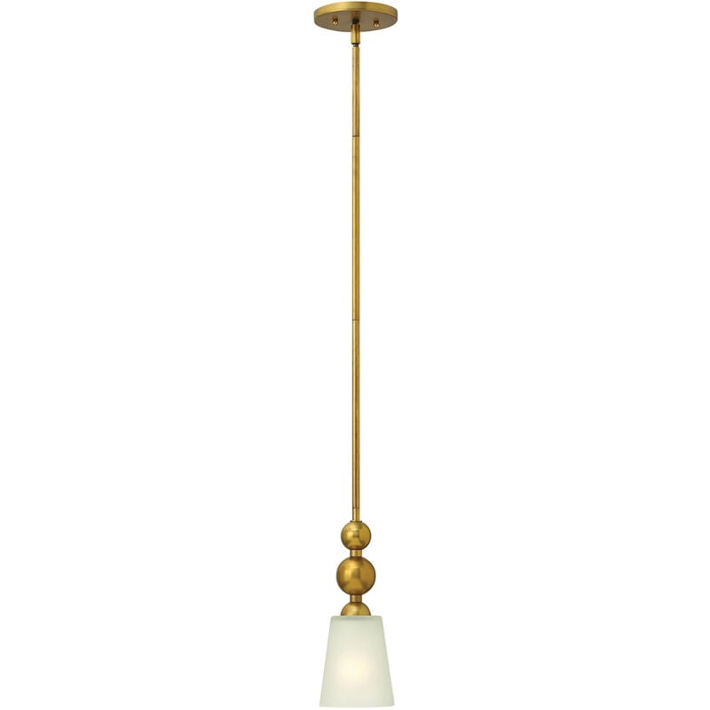 Collezione Zelda STILE ZELDA Mini lampada a sospensione a 1 luce - Ottone Vintage. La sorprendente silhouette in stile metà secolo di Zelda è caratterizzata da sfere metalliche rifinite in nichel lucido, che aumentano di dimensioni man mano che scendono dall'anello superiore, creando un'elegante colonna centrale senza soluzione di continuità. Gli eleganti bracci rettangolari ad arco sostengono i paralumi affusolati in vetro acidato, appoggiati su una coppe a emisfero, che ne aumentano il fascino vintage.