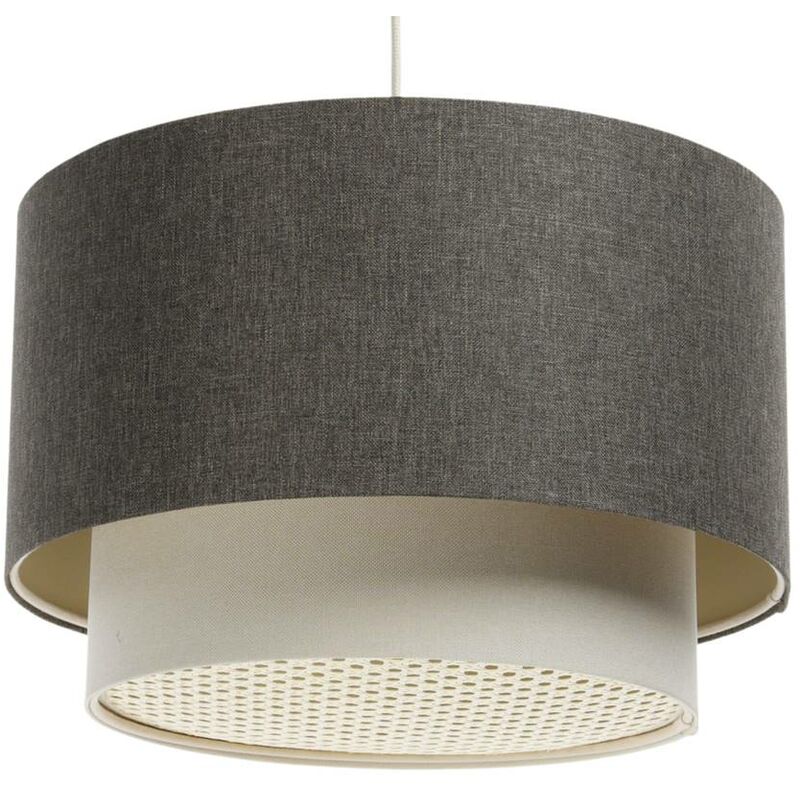 Lampada sospesa boho elegante E27 1x40w tessuto strutturato su plastica in PVC, con diffusore rattan grigio scuro, bianco H: 96 cm Ø40 cm Dimmessibile Dimensioni in mm: altezza: 960;