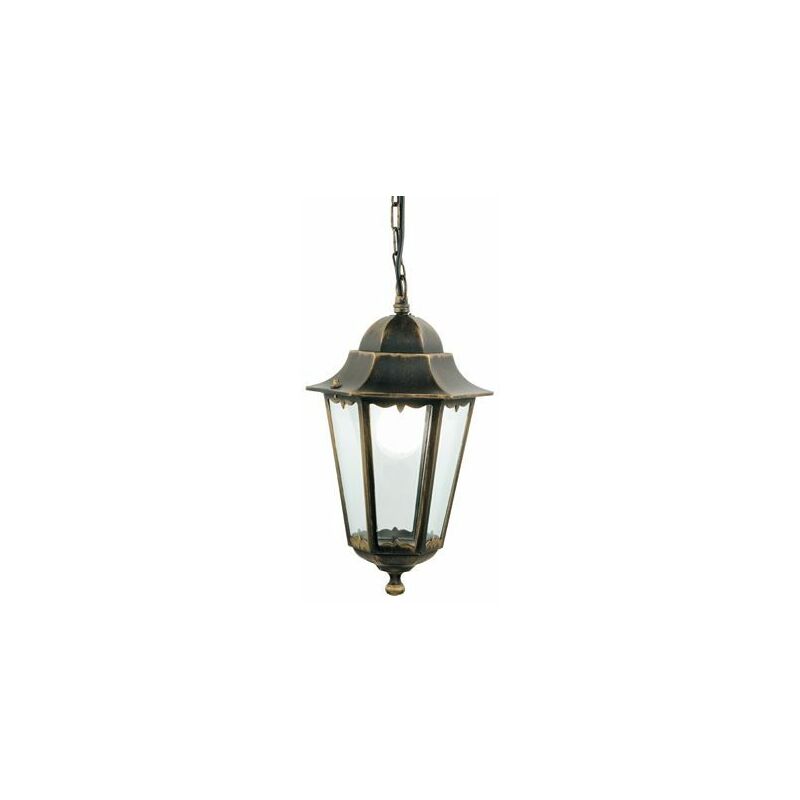 Lampada sospesa colore nero e oro per esterno linea merlet. Struttura in pressofusione di alluminio. Trattamento anticorrosivo. Verniciatura a polveri epossidiche. Diffusori in vetro trasparente. Copri portalampada di alluminio in tinta. Portalampada E27 in porcellana. Accessori per il fissaggio inclusi. Adatta per lampade ad incandescenza. Adatta per lampade a risparmio energetico. Alimentazione 230 V ~ 50 Hz. Controbase di fissaggio in termoplastico. Cavo di alimentazione H05RN-F 3G1. Altezza max lampade mm 200 Max 100 W. Classe di protezione: IP43 Potenza massima lampade: 100W Linea merlet Al confine tra artigianato ed arte, la romantica linea Merlet sembra uscita da un contesto fiabesco, incantato, frutto di una riuscita armonia tra creatività e tradizione dellitalian style. Adatta a soddisfare gusti ricercati e stravaganti di indubbio carattere e personalità.