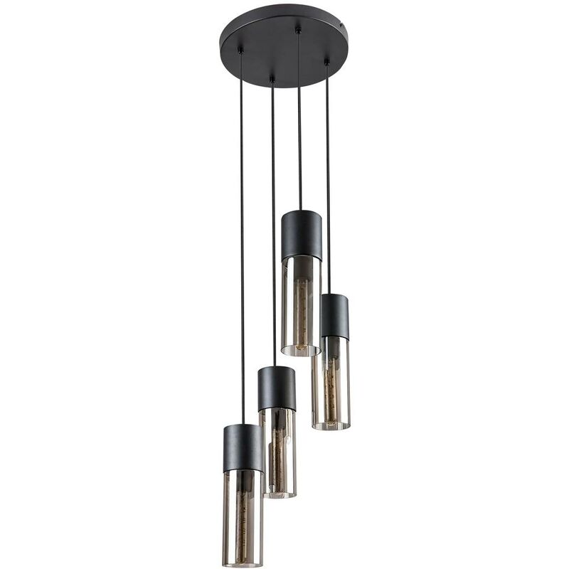 Lampada sospesa Ronno Metal Black Black Glass Tinted E27 4 x Max, 25W H: 120 cm Ø30 cm Dimmabile Dimensioni in mm: Altezza: 1200, diametro: 300 Peso in kg: 2.542 Tipo medio luminato/versione: E27 Lampade contengono: No Prestazioni massime in Watt: 4 x max.25w Classe di protezione: ip20 Dimmbar: Sì Materiale per la casa: Metal Colore abitativo: Nero Materiale vetro/picchi: Glass Colore vetro/ombrello: tinto