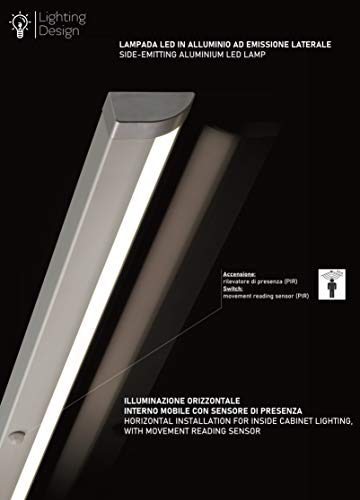 LUX P01 - Lampada LED sottopensile 280mm ad emissione laterale per interno casa. In alluminio in finitura anodizzata. Accensione con sensore di presenza. Luce naturale (4100° K). Driver 10W incluso