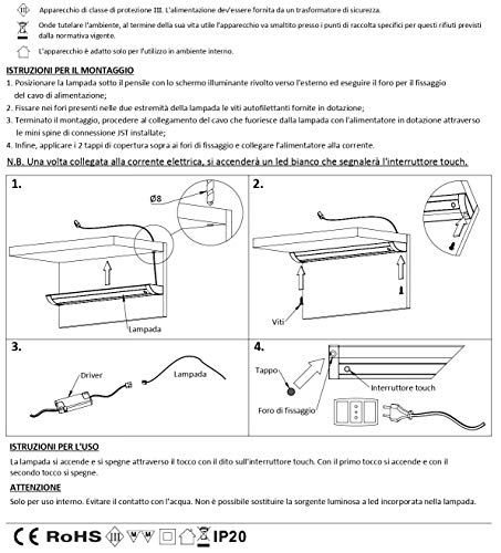 Ambientazioni (solo per interno casa, evitare il contatto con l'acqua, grado di protezione IP20): ideale per living, camere da letto, interno mobile, cucine;