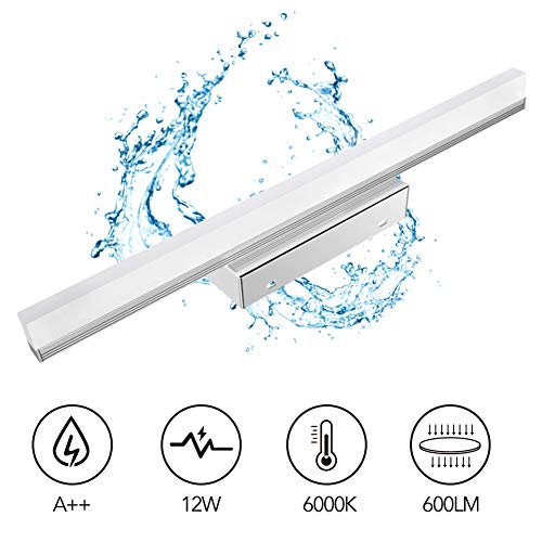 Lampada Specchio Bagno - 12W/50cm Applique da Parete interno moderno,Luci da Specchio Bagno,Mobile Bagno LED Acciaio Inossidabile e Acrilico, Luce Bianca
