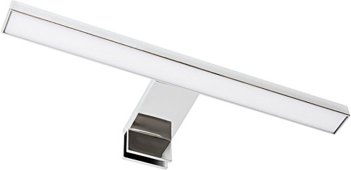 Lampada LED per specchio a doppia funzione: utilizzabile come lampada a plafone su armadi o come illuminatore sugli specchi. Funzionamento a 230 V con trasformatore LED incorporato. Ideale per illuminare il bagno o montare sui mobili.