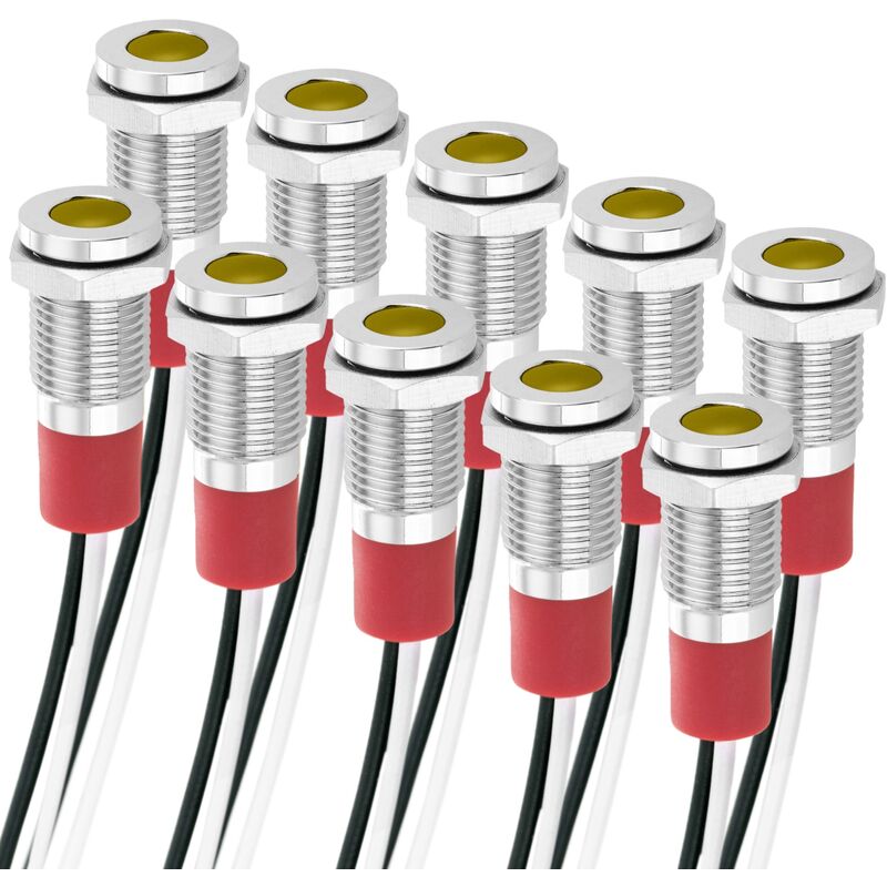 Lampada spia con tecnologia LED. È un dispositivo di illuminazione di piccole dimensioni che viene spesso utilizzato come indicatore luminoso in diverse apparecchiature e sistemi. Il prodotto è adattabile a molteplici utilizzi a seconda delle esigenze dell'utilizzatore. La sua struttura e flessibilità lo rendono ideale per l'installazione in qualsiasi luogo, anche se di difficile accesso. Caratteristiche del prodotto: CARATTERISTICHE: Indicatore luminoso di alta qualità. Questo prodotto ha un'elevata luminosità. Ha un corpo metallico e un cavo da 200 mm che offre completa libertà di posizionare il pilota dove serve. Il cavo ha anche due pali lunghi 20 cm. Il prodotto ha una struttura a pannello incassato che ne facilita l'utilizzo e l'installazione. La tensione è di 220 VAC e il consumo è di 0,24 W. Il colore della luce LED è giallo. La confezione contiene 10 unità. COMPATIBILITÀ: compatibile con punte da 8 mm di diametro. Il pilota da 8 mm è compatibile con un'ampia varietà di