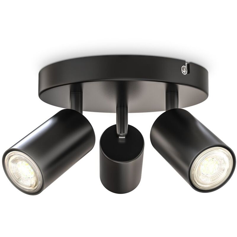 Plafoniera a 3 fiamme in metallo nero opaco come lampada da soggiorno, da camera da letto o da ingresso. Moderna plafoniera con spot rotanti e orientabili per l'illuminazione individuale delle vostre stanze. I portalampade GU10 sono progettati per LED con max. 5 Watt. Sostituzione semplice delle lampadine possibile. Le dimensioni del faretto regolabile sono: diametro: 190 mm, altezza: 90 mm. I fori di montaggio hanno una distanza di 90 mm. La fornitura comprende anche 2 tasselli, 2 viti, 1 staffa di montaggio e istruzioni di montaggio. Gli illuminanti non sono inclusi. Tutto a colpo d'occhio: Faretto a soffitto a 3 fiamme Prese GU10 per LED max. 5 Watt Ruota e ruota Nero opaco Sorgente di luce non inclusa Dimensioni: 190x190x90 mm (lunghezza x larghezza x altezza)