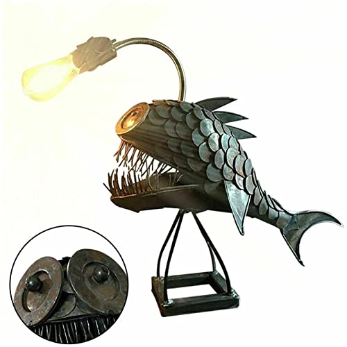 Lampada da tavolo Angler Fish Lampade da scrivania creative, Lampade da scrivania USB Shark Luce LED unica, Lampade da tavolo retro art da terra (Grande)