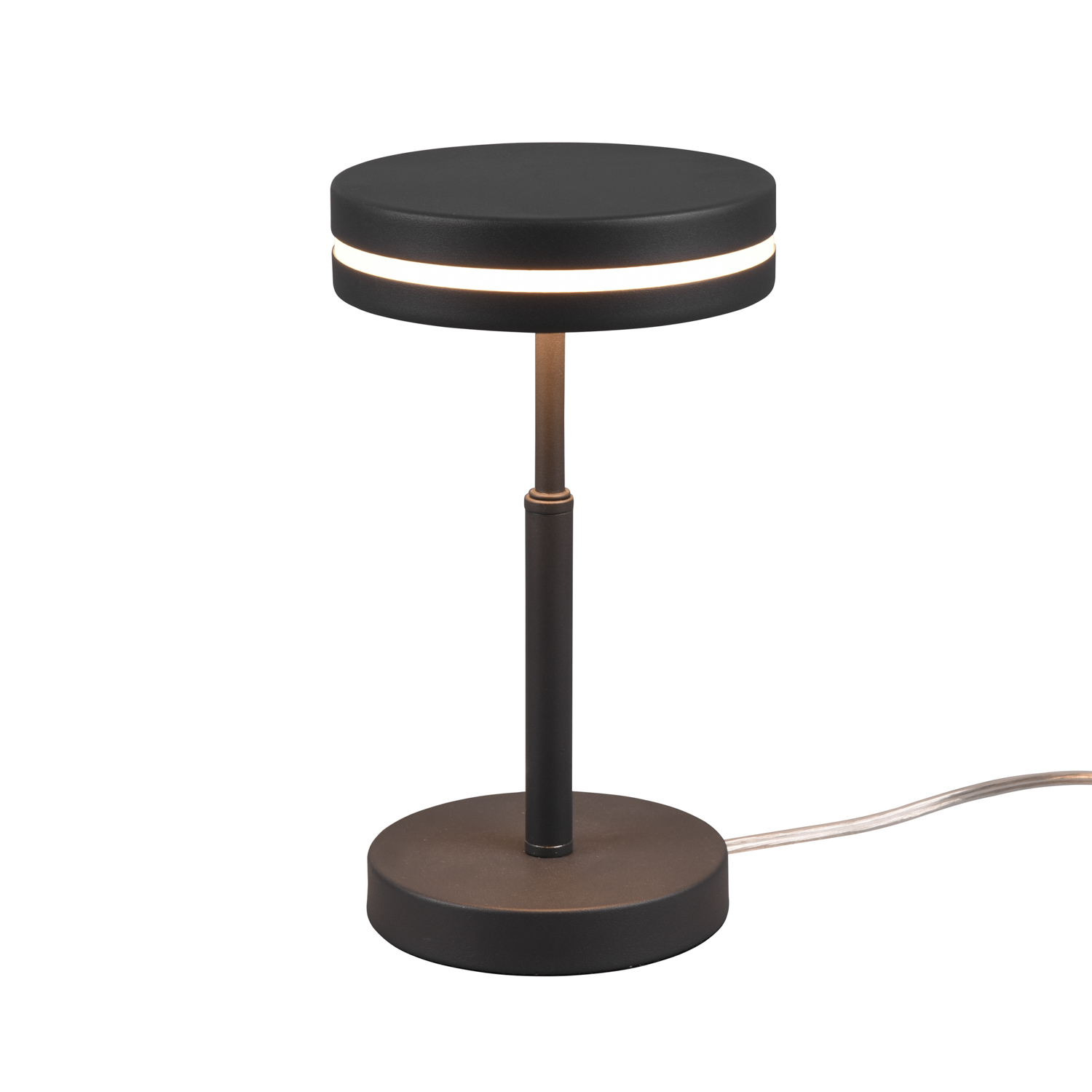 Pratica, funzionale e super elegante! La lampada da tavolo Franklin conquista subito con il suo aspetto moderno e futuristico. Posizionata sul comodino o sul comò, la lampada da tavolo crea un'atmosfera luminosa piacevole e raccolta. Può essere facilmente accesa e spenta tramite l'interruttore sul cavo. Grazie al design color antracite può essere abbinata ad ogni stile di arredo. Inoltre, la lampada presenta la moderna tecnologia LED, caratterizzata da alta qualità della luce ed efficienza energetica. Rispetto alle lampade alogene tradizionali, è possibile risparmiare fino all'80% dei costi energetici. Altezza 25 cm. Diametro 14 cm.