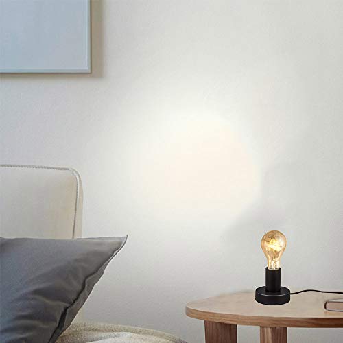 Lampada da tavolo, attacco per lampadina E27 non inclusa, interruttore sul cavo, diametro 10cm, Lampada da comodino vintage in metallo Nero, luce da lettura,per camera da letto Soggiorno