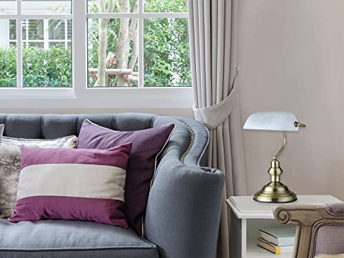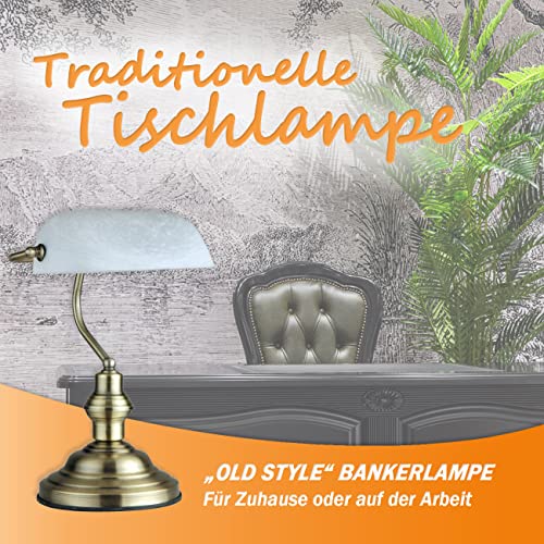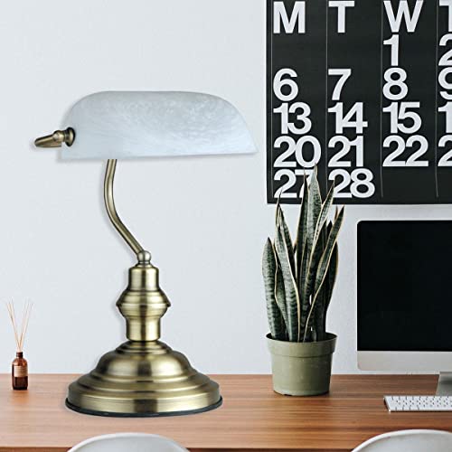 Lampada da tavolo da banchiere in ottone bianco - Lampada da scrivania Retro con paralume bianco - da ufficio - con panno per la cura - altezza 36 cm