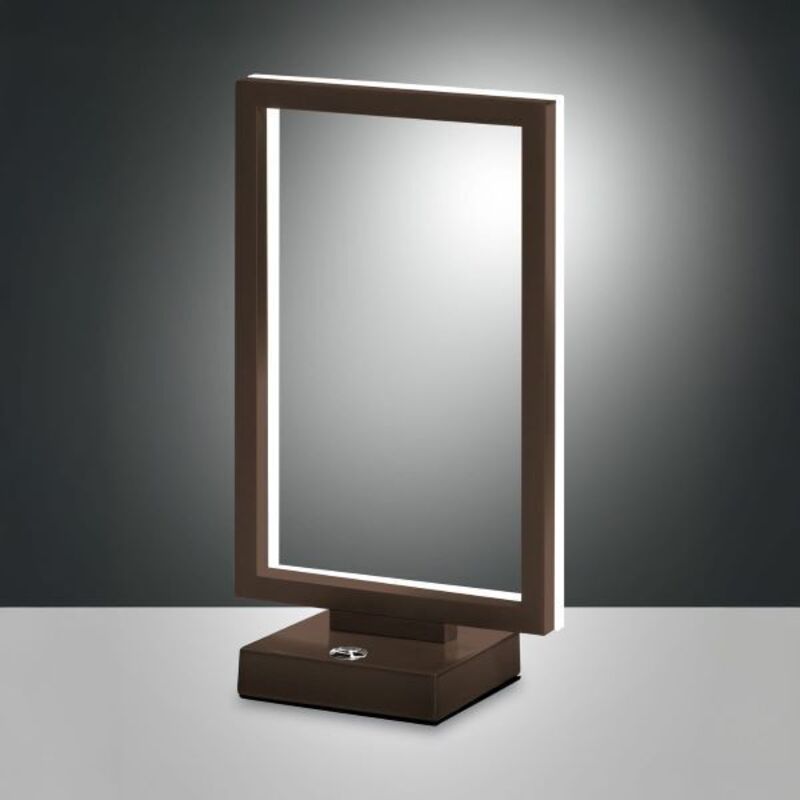 Lampada a led da tavolo Bard moderna in metallo colore corten e diffusore in metacrilato da 15 Watt, di design. Lampada a led da tavolo moderna dimmerabile con la regolazione da pulsante, questa lampada ha la possibilità di variare l'intensità della luce, con pulsante. Ideale da applicare nelle abitazioni moderne come prodotto di arredo, su scrivanie nei salotti o nelle camere da letto. Lampada a led da tavolo con un design moderno molto apprezzata da interior designer, architetti e progettisti, è molto luminosa, pertanto molto indicata per illuminare scrivanie di uffici, studi professionali, negozi o showroom.La lampada di colore corten si adatta in tutti gli ambienti, prevalentemente in ambienti con elementi in legno. Questa lampada a led da tavolo ha come grado di protezione un IP20, quindi è utilizzabile solo all'interno. Questa lampada a led da tavolo è disponibile nella sola tonalità di colore a luce calda (3000K). Dimensioni della lampada da tavolo 17cm e altezza 30cm, base