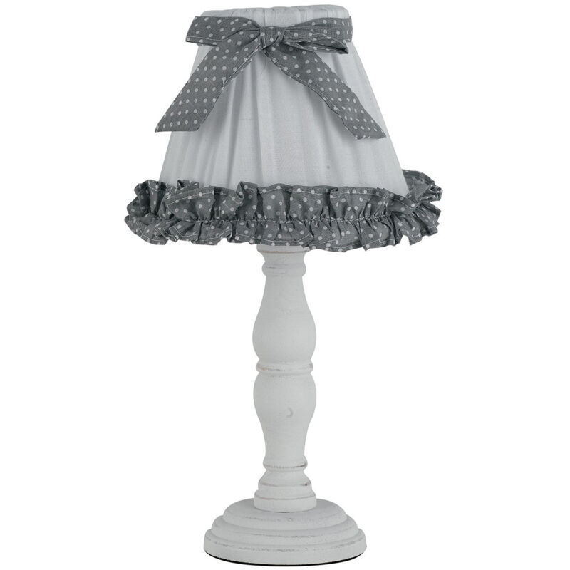 Lume in legno naturale con finitura bianca e paralume in tessuto bianco con decorazioni e fiocco in grigio tortora. Colore: Legno Materiale: Cotone e legno Tipo sorgente o lampadina richiesta: E14 Grado di protezione da corpi solidi e acqua: IP20 (solo uso interno) Dimensioni: 34x18x18 cm. Il brand Luce Ambiente e Design pone l'accento su tendenze, design italiano e qualità dei materiali. Tutto ciò che serve per illuminare e allo stesso tempo arredare i tuoi ambienti domestici. Vasta selezione di illuminazione da soffitto, parete o superifice. Lasciati affascinare dalle linee sinuose, accostamenti audaci e un tocco di tecnologia che non guasta mai. La Gruppo FT si impegna nella ricerca dei migliori prodotti da offrire ai propri clienti, focalizzandosi su velocità e servizio post-vendita.