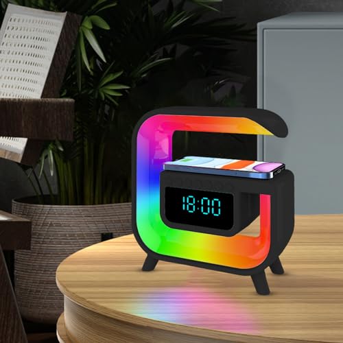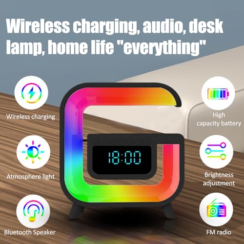 ☪ 【Comodo e multiuso】 Con la sua funzione di ricarica wireless, puoi caricare facilmente i tuoi dispositivi compatibili senza dover aggrovigliarti con i cavi. La lampada di ricarica wireless dispone anche di un altoparlante Blue-tooth integrato e può anche utilizzare la modalità di riproduzione USB, scheda TF e AU-X, consentendoti di goderti la tua musica o i tuoi podcast preferiti mentre lavori o ti rilassi.
