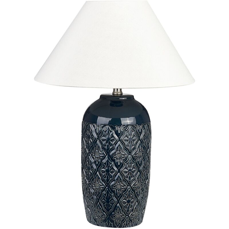 Elegante lampada da tavolo con base ornamentale. Completa l'arredamento del tuo salotto o della tua camera da letto con questa lampada funzionale, ma anche estremamente decorativa. La sua base in ceramica è molto stabile e il motivo visibile sulla sua superficie aggiunge un carattere unico al pezzo. Dettagli: Tipo di prodotto: Lampada da tavolo Stile: Classico Colore principale: Blu Tonalità: Blu scuro Tipo di materiale: Ceramica Materiale principale: Ceramica Materiale secondario: Lino Materiale della base: Ceramica Materiale del paralume: Lino Composizione del materiale: 100% lino Potenza elettrica: Max. 60W Finitura: Brillante Codice IP di protezione: IP 20 Lampadine richieste: 1 Voltaggio: 230 V (50 Hz) Dimensioni: Dimensioni della base: 18x18x33 Lunghezza del cavo: 180 cm Profondità: 40 cm Larghezza: 40 cm Altezza: 56 cm Peso: 2.8 kg L'offerta include: 1 x Lampada da tavolo, Non include: Lampadine Caratteristiche chiave: Luce soffusa, per un'atmosfera rilassante, Pratico