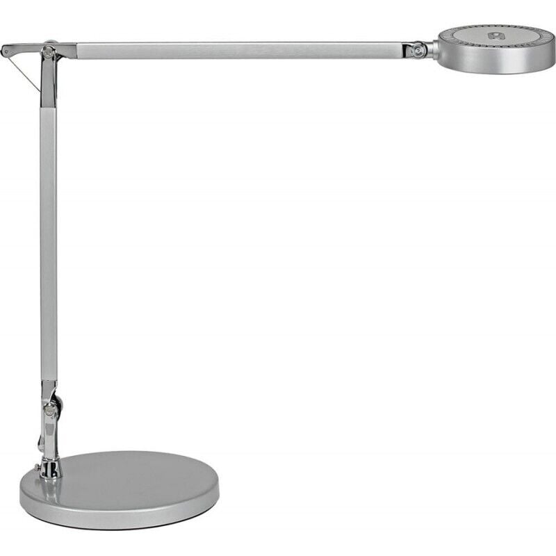 Lampada a LED da tavolo MAULgrace, dimmerabile, argento. Fornitura = montato. Tipo di prodotto = luci da tavolo. Base della lampada = base. Classe di efficienza energetica per fonte di luce = F (spettro da A a G). Consumo energetico = 6 kWh/1000h. Lampadina = LED. Potenza = 6 Watt. Colore della luce = bianco giorno, bianco caldo. Temperatura di colore = 3000 - 6500 K. Indice di resa cromatica = 84. Luminosità max = 1400 Lux. Flusso luminoso = 618 Lumen. Tensione di alimentazione = 220 - 240 V. Cavo di collegamento = 2 m. Durata = 20000 ore. Grado di protezione = II alimentatore con Europlug. Colore = argento. Caratteristiche = dimmerabile. Testa della lampada = girevole, inclinabile. Accensione = sensore touch. Materiale = alluminio, anodizzato. Altezza totale = 440 mm. Lunghezza bracci = 365 mm. Temperatura di colore regolabile in modo continuo, 4 regolazioni della luminosità a seconda dell'ora del giorno e della posizione. Grande raggio d'illuminazione grazie al lungo braccio doppio.