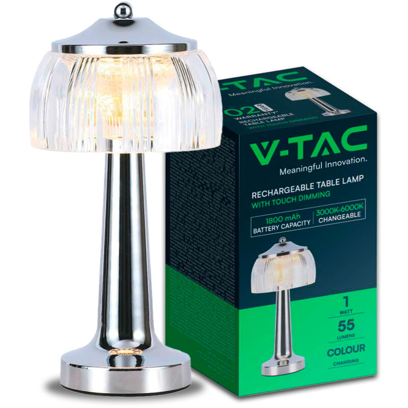V-TAC Lampade da Tavolo Lampada LED da Tavolo 1W 13.5*26.5 Colore Cromo Ricaricabile con USB C Touch Dimmerabile 3in1