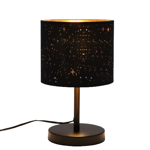 ZMH Lampada da tavolo Lampada da comodino in tessuto in stile country - Attacco E27 Lampada da tavolo vintage Soggiorno Paralume retrò Nero Oro Lampada da comodino per camera da letto