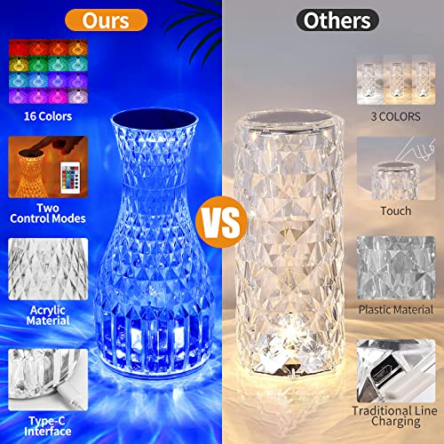 Lampada da Tavolo in Cristallo, LED Lampada Diamantata Cristallo da Tavolo,16 Colori Lampada Cristallo Touch,Portatile Ricaricabile RGB Dimmerabile Lampada da Tavolo Senza Fili per Camera da letto Bar