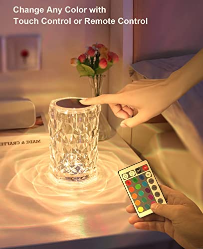 Lampada da Tavolo Cristallo, Lampada Touch RGB 16 Colori, Lampada da Tavolo Senza Fili Ricaricabile, Lampada da tavolo a LED con telecomando, dimmerabile, per Camera da Letto Bar, Regali Natale