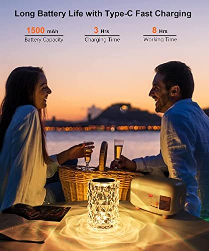 Ricaricabile e LED a lunga durata: La lampada da tavolo cristallo ha una lunga durata. La lampada da tavolo portatile e ricaricabile rende possibile la mobilità della fonte di luce e può essere utilizzata sia all'interno che all'esterno.