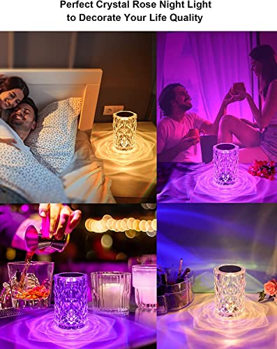 Lampada decorativa in cristallo rosa diamante: Tecnologia di taglio 3D unica per creare una lampada da tavolo in cristallo a forma di diamante, che riflette la luce colorata a forma di rosa. Camera, soggiorno, sala da pranzo, festa, crea un'atmosfera romantica e calda, perfetto regalo romantico a sorpresa per bambini, persone care o amici in occasione di compleanno/Natale/San Valentino.