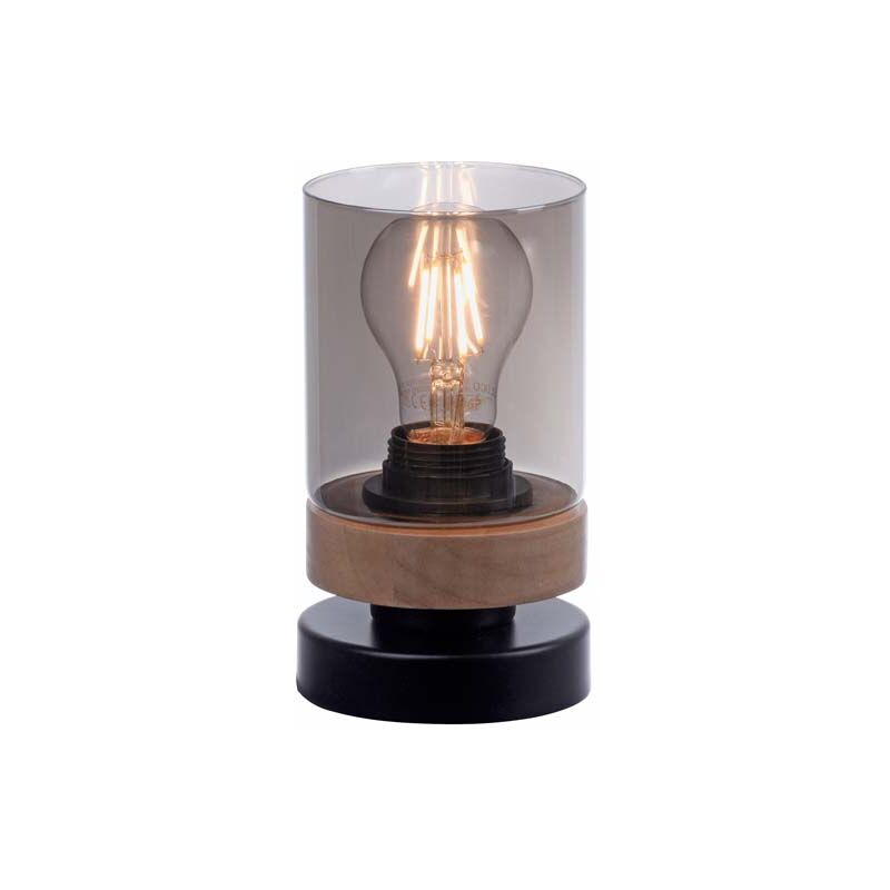 Descrizione La lampada da tavolo PASQUAL è composta da una base in metallo nero. Sopra c'è una base in legno della gomma, che proviene dall'albero della gomma. Questo contiene un paralume rotondo in vetro, che ha una sfumatura grigiastra ed è noto come effetto vetro fumé. Questo look trendy crea un'atmosfera luminosa accogliente e fornisce un'illuminazione soffusa, preferibilmente sul comodino in camera da letto. La lampada da tavolo deve essere dotata di una lampadina E27 da massimo 40 watt. La luce aggiuntiva può essere facilmente accesa e spenta utilizzando un interruttore a filo. Dettagli • Colore: nero • Attacco: E27 • Alimentazione lampadina in watt: 40W (Watt) • Classe di protezione IP: IP20 • Materiale 1: Vetro • Materiale 2: Ferro • Materiale 3: Legno • Dimensioni LxLxAxØ: 10 cm x 10 cm x 18 cm x 10 cm