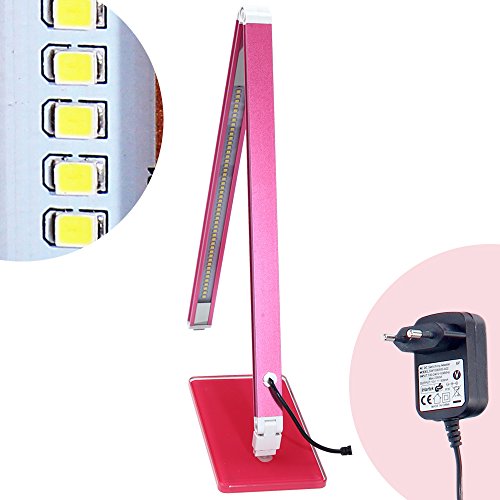 Lampada da tavolo a LED da 7 W, dimmer continuo, base in vetro temprato, corpo in lega di alluminio."AC90-240V, DC12V", 600LM, (48 2835 lampadine perle, 13 lm/pezzo) Rot