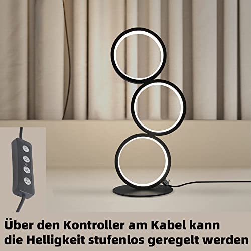 Lampada da tavolo a LED dimmerabile lampada da comodino moderna lampada da scrivania nera a forma di anello Lampada da notte decorativa da 12 W con cavo da 2,9 m per camera da letto, soggiorno, studio
