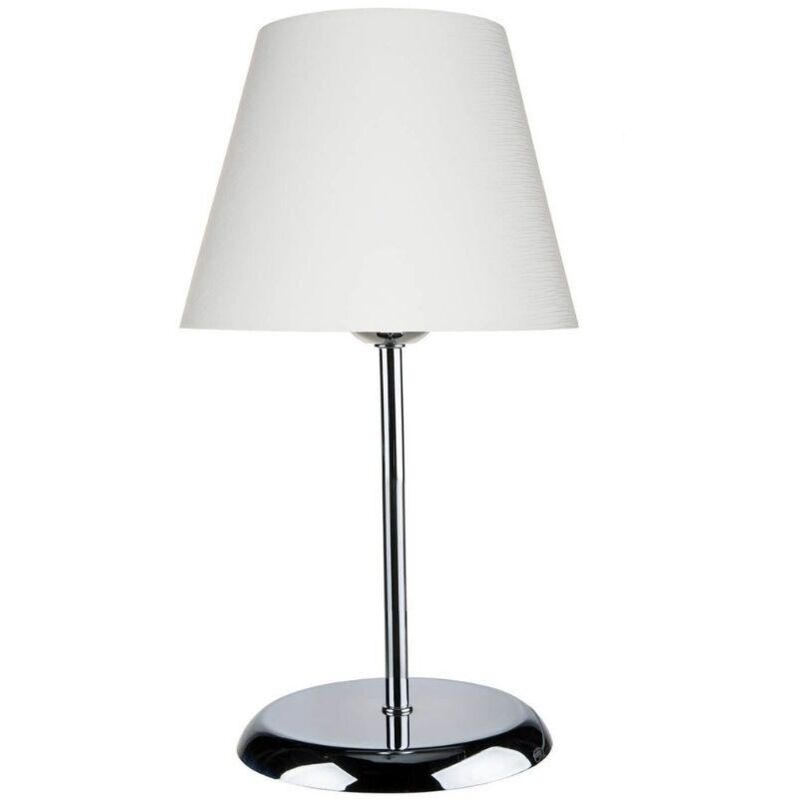 Lampada da tavolo in metallo e paralume tessuto Elva ASZ1047 Caratteristiche: Struttura in metallo. Paralume in tessuto. Colore base cromo. Colore paralume bianco. Altezza 39 cm. Larghezza paralume 25 cm. Larghezza base 16,5 cm. Attacco lampadina 1 x E27 max 60 WATT.