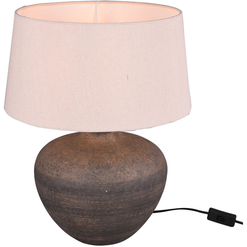 Lampade da Tavolo Lampada da Tavolo da Interno Attacco E27 in Ceramica Marrone Lou Lampada Da Tavolo Grande Base Ceramica Marrone Anticata con Paralume Sabbia H. 46Cm Caratteristiche Tecniche Stile Moderno Fonte di luce principale: Lampadina (non inclusa) Attacco E27 Materiale: Ceramica Colore Finitura: Marrone Potenza (W): 4 Lumen: 320 Kelvin: 3000K Alimentazione (V): 230 Durata Nominale (h): 25000 Numero Accensioni: 12500 Classe energetica: A+ Altezza (cm): 46 Diametro (cm): 38 Cavo-Base-Interruttore (mm): 300 Cavo-Interruttore-spina (mm): 1200 Colore del cavo: NERO Peso netto (kg): 2,615