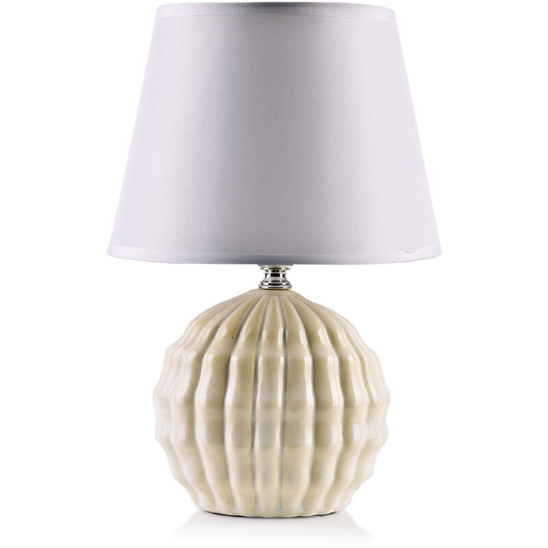 La lampada della serie LETI NATURAL di MONDEX è composta da una base in ceramica con goffratura verticale e un paralume materico. La base grigia conferisce agli interni un'atmosfera unica. La goffratura conferisce alla lampada uno straordinario effetto multidimensionale. In abbinamento al paralume si adatta perfettamente alle tendenze attuali. Dimensioni totali: 15x9,5xh28cm Base: 15x9,5xh20cm Lampadina: 14x19,5xh15cm Peso: 590g/664g con imballo Lampadina: E14 Lunghezza del cavo: 120 cm. Base imballata in scatola marrone: 14 x 10 x 20 cm. Paralume allentato. Deve la sua popolarità sia alla praticità che all'estetica. Al giorno d'oggi ci sono molti modelli e design diversi, quindi ognuno può trovare qualcosa di adatto al proprio interno. Le lampade da tavolo in ceramica hanno una lunga storia che risale all'antica Cina. A quel tempo venivano utilizzati principalmente come fonte di luce nei templi e nei palazzi imperiali. Tuttavia, in Europa ha guadagnato popolarità solo nel XIX secolo