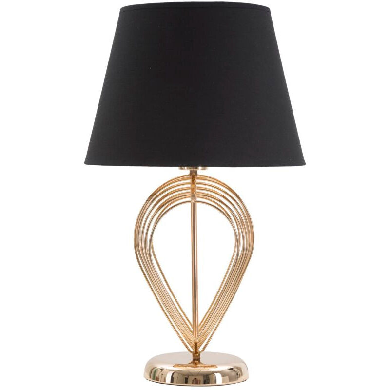Lampada da Tavolo Maxt Ø32,5x53,5 cm in Ferro Carta e Tessuto Oro e Nero Lampada da tavolo in metallo dorato con paralume in tessuto nero. La lavorazione della base, semplice ed elegante, ed il contrasto tra il nero e l'oro donano un tocco di raffinatezza ad ogni ambiente.