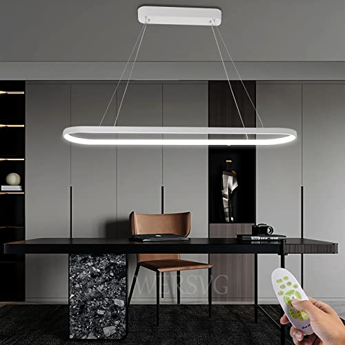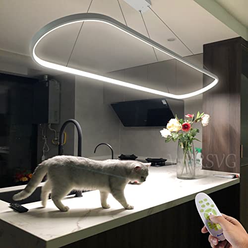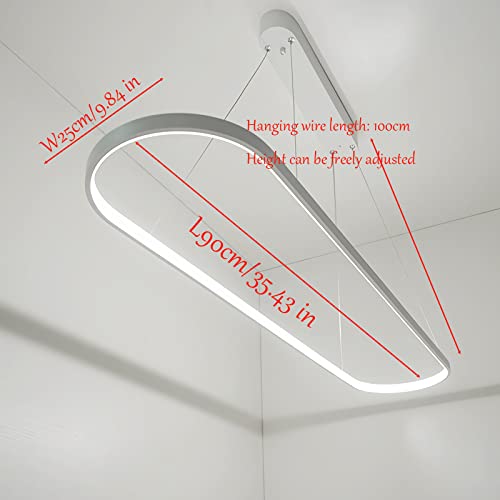 Lampada tavolo moderna LED sospensione dal design ovale Dimmerabile 3500K-6500K Luci sospensione Bianco lampade a sospensione Altezza regolabile, Per il soggiorno la sala da pranzo e l'ufficio L90cm