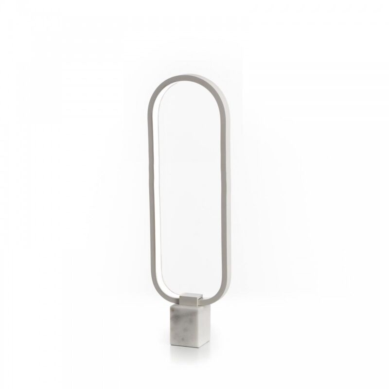 Lampada da tavolo LED - Naos - MATERIALI: Paralume: Metallo Struttura: Metallo Base: Marmo COLORI: Paralume: bianco struttura: bianco base: bianco DIMENSIONI: 7cm X 18cm H. 60cm