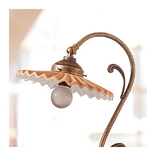 Lampada da tavolo in ottone e paralume in cotto plisettato vintage retrò - Ø 21 cm