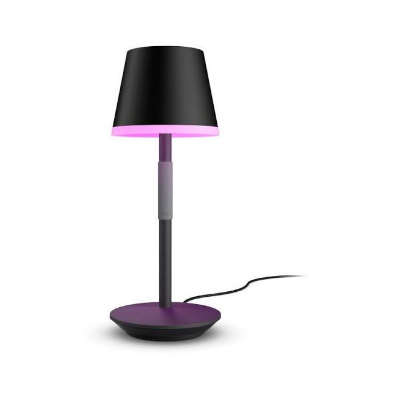 Lampada da tavolo led Philips Hue Go portatile e ricaricabile nera - 40459500 Porta la luce intelligente ovunque tu voglia con questa lampada intelligente portatile di colore bianco. È destinata all'uso in esterni, è dotata di un'impugnatura in silicone verde salvia che ti consente di trasportarla facilmente dove ti occorre. Specifiche Colore NeroMateriale metallo Durata fino a 20.000 ore Colore della luce 2.000-6.500 K Hue White Color ambiance Tensione di rete 220-240 VApparecchio dimmerabile SìCodice IP IP20/54Batterie incluse SìCaricabatterie incluso SìScegli il tuo colore SìDimmer integrato SìLED integrato SìInterruttore on/off SìPortatile SìPresa per il Regno Unito inclusa SìImpermeabili SìAltezza 35 cmLunghezza 14,2 cmLarghezza 14,2 cmLunghezza 5,6 inLarghezza 5,6 inClasse di protezione Classe II e III Numero del materiale (12NC) 929003128501 Colore: Nero Valutazione IP: IP54 Area di installazione: Interna ed esterna Fonte di alimentazione: Batteria Tecnologia di illuminazione