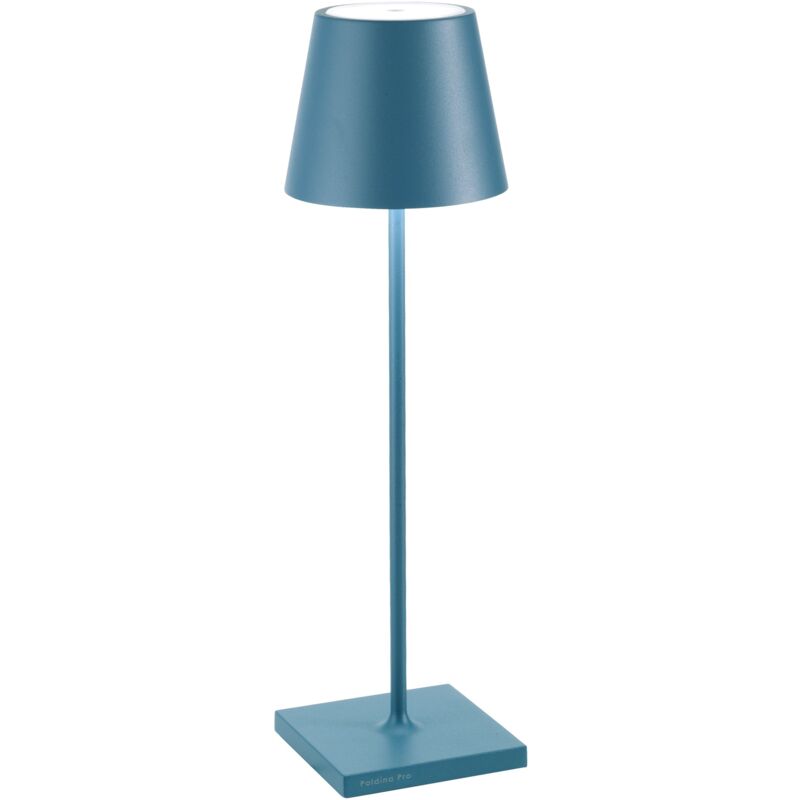 Lampada a led da tavolo Poldina Pro Blu Avio ricaricabile e dimmerabile con batteria incorporata da 2,2watt. Lampada a led da tavolo con corpo in alluminio verniciato color blu avio. La batteria della Poldina Pro ha una durata garantita di 9 ore alla massima potenza. Batteria ricaricabile tramite base di contatto inclusa nella confezione. La lampada a led da tavolo Poldina Pro è in alluminio con corpo verniciato blu avio, diffusore satinato in policarbonato, dove, sulla sommità del diffusore, è presente il pulsante touch di accensione della lampada. Poldina Pro è una lampada di design ideale da utilizzare nei dehors, gazebo, bar, ristorante e aree relax, si utilizza molto anche nelle camere da letto, nei salotti e negli studi professionali. Lampada a led da tavolo di design. Il colore blu avio si abbina molto agli ambienti moderni, alle imbarcazioni e alle località di mare. La collezione Poldina Pro ha un grado di protezione IP54 che la rende adatta sia all'uso interno che esterno. La