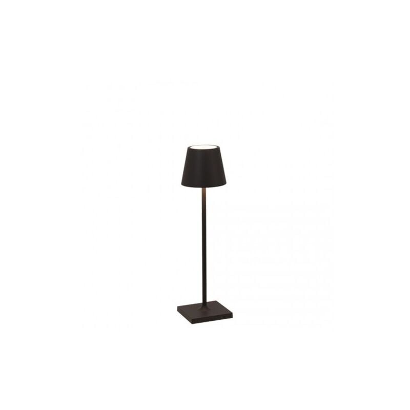 Lampada a led da tavolo Poldina Pro Micro nero ricaricabile e dimmerabile con batteria incorporata da 1,8watt. La batteria della Poldina Pro Micro ha una durata garantita di 8 ore alla massima potenza. Tempo di Ricarica a 1A: circa 3/4h. Pacco batteria al litio ricaricabile e sostituibile. Flusso luminoso di 124-128-142 lumen. Resistenza alla nebbia salina fino a 500h. Batteria ricaricabile tramite base di contatto, con uscita USB, inclusa nella confezione. Caricatore a muro non incluso nella confezione. La lampada a led da tavolo Poldina Pro Micro è in pressofusione di alluminio con corpo verniciato nero, diffusore satinato in policarbonato, dove, sulla sommità del diffusore, è presente il pulsante touch di accensione della lampada. Poldina Pro Micro è una lampada di design ideale da utilizzare nei dehors, gazebo, bar, ristorante e aree relax, si utilizza molto anche nelle camere da letto, nei salotti e negli studi professionali. Lampada a led da tavolo di design. La collezione