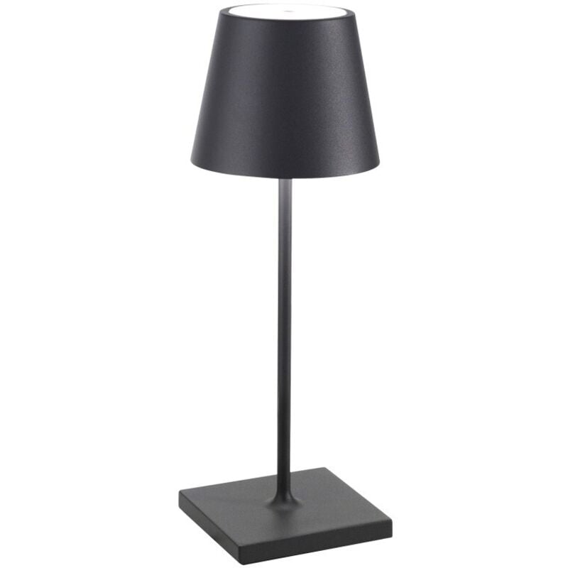 Lampada a led da tavolo Poldina Pro Mini Grigio Scuro ricaricabile e dimmerabile con batteria incorporata da 2,2watt. La batteria della Poldina Pro Mini ha una durata garantita di 9 ore alla massima potenza. Batteria ricaricabile tramite base di contatto inclusa nella confezione. La lampada a led da tavolo Poldina Pro Mini è in alluminio con corpo verniciato grigio scuro, diffusore satinato in policarbonato, dove, sulla sommità del diffusore, è presente il pulsante touch di accensione della lampada. Poldina Pro Mini è una lampada di design ideale da utilizzare nei dehors, gazebo, bar, ristorante e aree relax, si utilizza molto anche nelle camere da letto, nei salotti e negli studi professionali. Lampada a led da tavolo di design. La collezione Poldina Pro Mini ha un grado di protezione IP54 che la rende adatta sia all'uso interno che esterno. La colorazione della luce di Poldina Pro Mini è luce calda (3000K). Da soli o in compagnia, fedele complice per più di 9 ore Poldina Pro Mini è