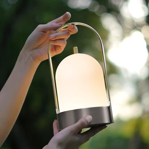 Il tuo partner portatile: realizzato in acciaio di alta qualità invece della plastica, adotta una finitura spazzolata e un design aerodinamico, rende le lampade da tavolo wireless più durevoli. Più anti-invecchiamento e più antiruggine. Questa lampada da tavolo con manico liscio è adatta per la casa, la camera da letto, il campeggio, la grigliata, una festa all'aperto e qualsiasi altro luogo che desideri.